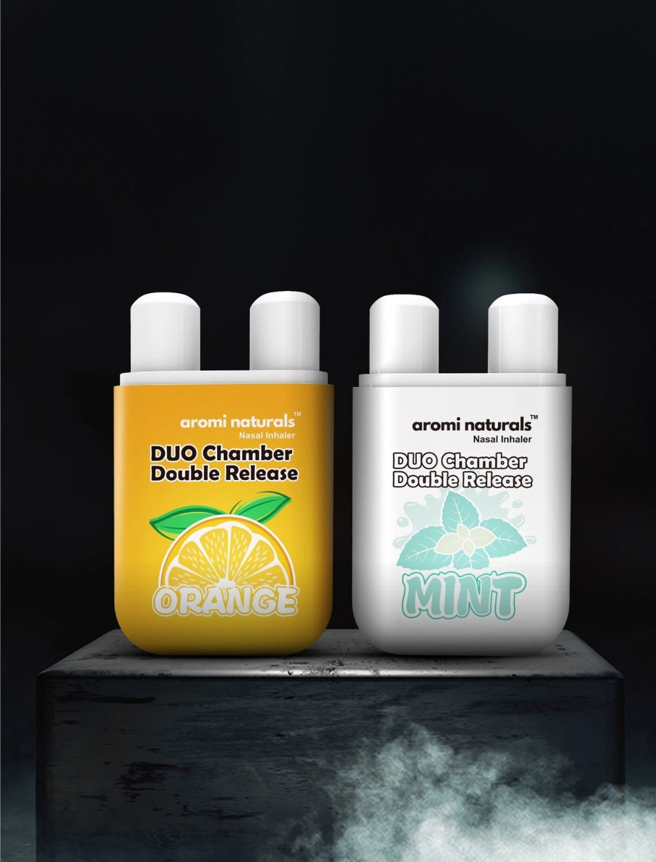 Our Duo Chamber Inhalers harness the power of pure essential oils like mint and fruit extracts. They offer a natural, drug-free way to clear your head, enhance focus, and provide soothing or energizing aromatherapy benefits instantly.