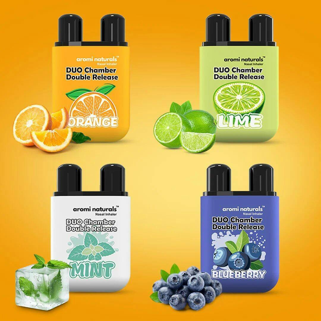 • Includes: 4 Duo Chamber Nasal Inhalers – Mint, Orange, Blueberry, Lime